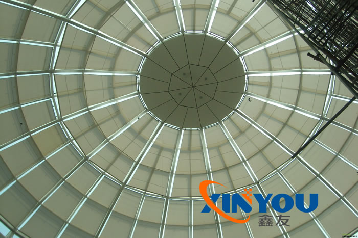電動遮陽百葉FTS電動天棚簾特別適用于普通電動卷簾無法安裝的彎曲、傾斜的場合,整個系統由驅動系統、面料和控制系統三部分組成,驅動系統采用2個FTS專用管狀電機,分別安裝在兩條卷管中,面料一端固定在其中一條卷管上,固定面料另一端的鋼絲繩卷曲在另一條卷管的卷繩器上。這兩臺電機通過一個專用的控制器協調工作,其中一臺電機提供面料運行的動力,另一臺電機的剎車同時工作,提供一定的阻力拖住面料,避免面料下墜,天棚完全打開后,面料會卷在其中一條卷管上,運行中或停止時面料均有張力,可制作大面積的平面或弧形面的天棚簾系統。