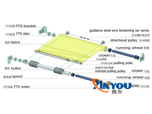 電動遮陽百葉FTS電動天棚簾產品結構示意圖