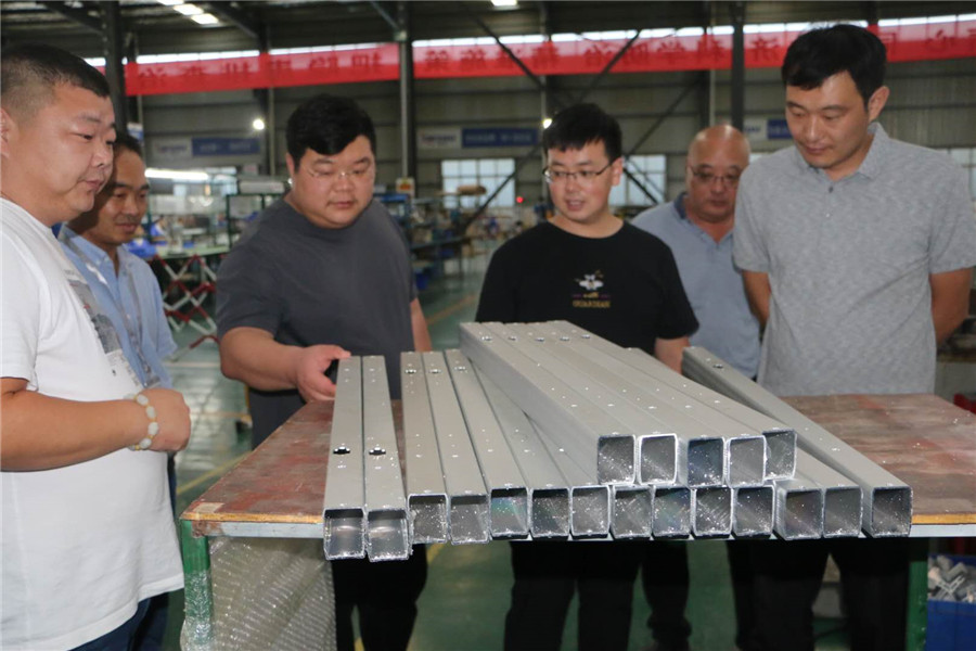 隨后,考察團一行來到了鑫友生產車間,對車間生產進行實地考察,對公司的產品質量管理、生產規模、生產機械化、標準化程度更深入的了解,在深入了解生產流程后,考察團對車間生產管理大加贊許,對產品的質量管控也高度贊揚。