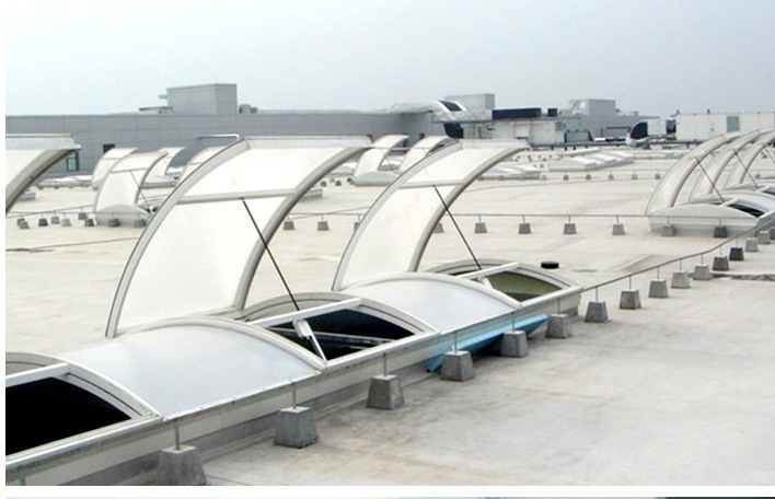 .3圓拱形排煙天窗成弧形結構,夏季有利于排水,冬季不積雪