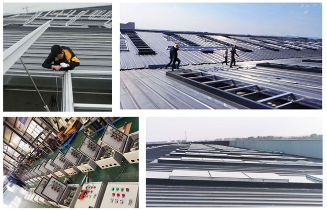 鑫友科技承接徐州中益航空設備有限公司飛機維修庫的電動排煙天窗工程,現已通過驗收,天窗選用TC95天窗,配備小螺桿式開窗器,消防聯動控制箱。