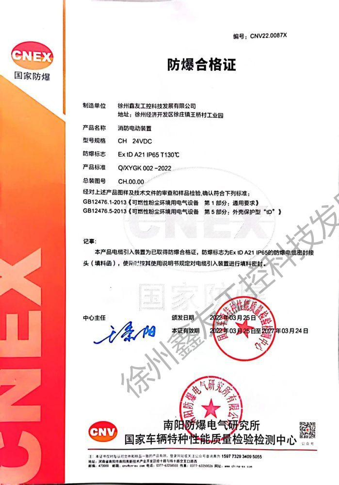 電動螺桿開窗機(jī)防爆合格證書(粉塵環(huán)境下)