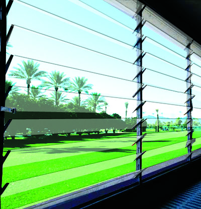新式玻璃百葉窗遮陽系統(tǒng),完美上演“遮陽、裝飾、自然風景”三重奏。玻璃百葉通透性***好,葉片選用透明或者磨砂玻璃等不同的材料,可以取得不同的視覺效果。玻璃百葉可以代替玻璃幕墻使用,既克服了幕墻不能開啟的缺憾,又保持了晶瑩剔透。