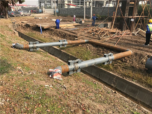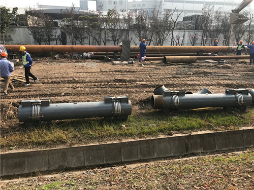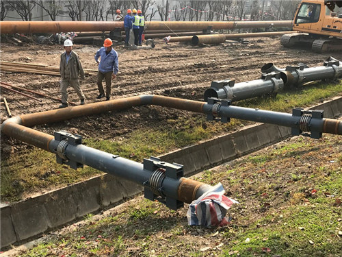 2017-11月上海金山化工區(qū)污水管道補償器安裝現(xiàn)場: 現(xiàn)場工人忙碌的身影 初步補償器管道正在連接中 現(xiàn)場工人們正安裝屬于中等不銹鋼波紋管補償管道 上海漢麥金屬軟管制造有限公司